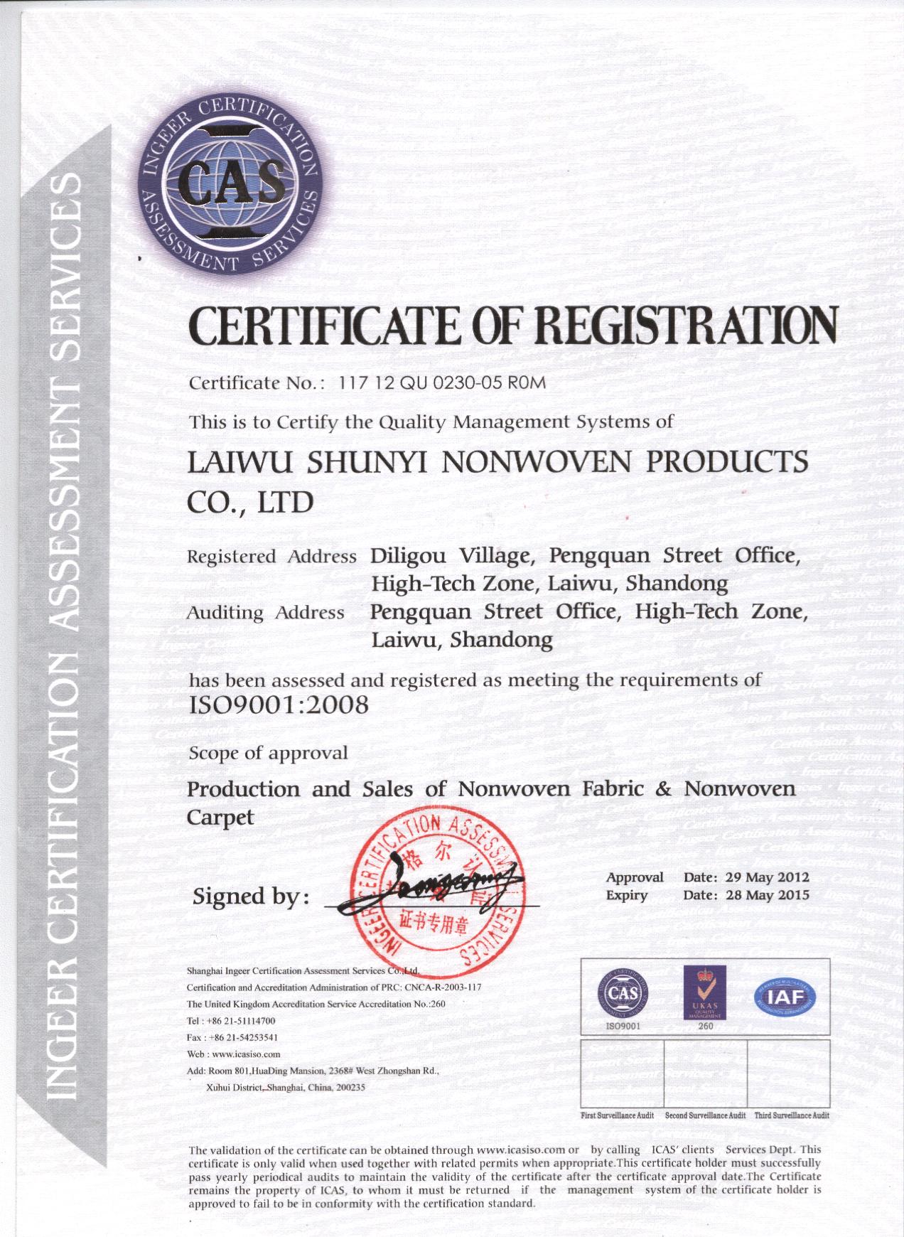 萊蕪順意無紡制品有限公司位于山東省萊蕪市高新區(qū),地處京滬高速公路東出口,40分鐘車程可達(dá)濟(jì)南遙墻國際機(jī)場、2小時可達(dá)青島港。交通運輸便利。